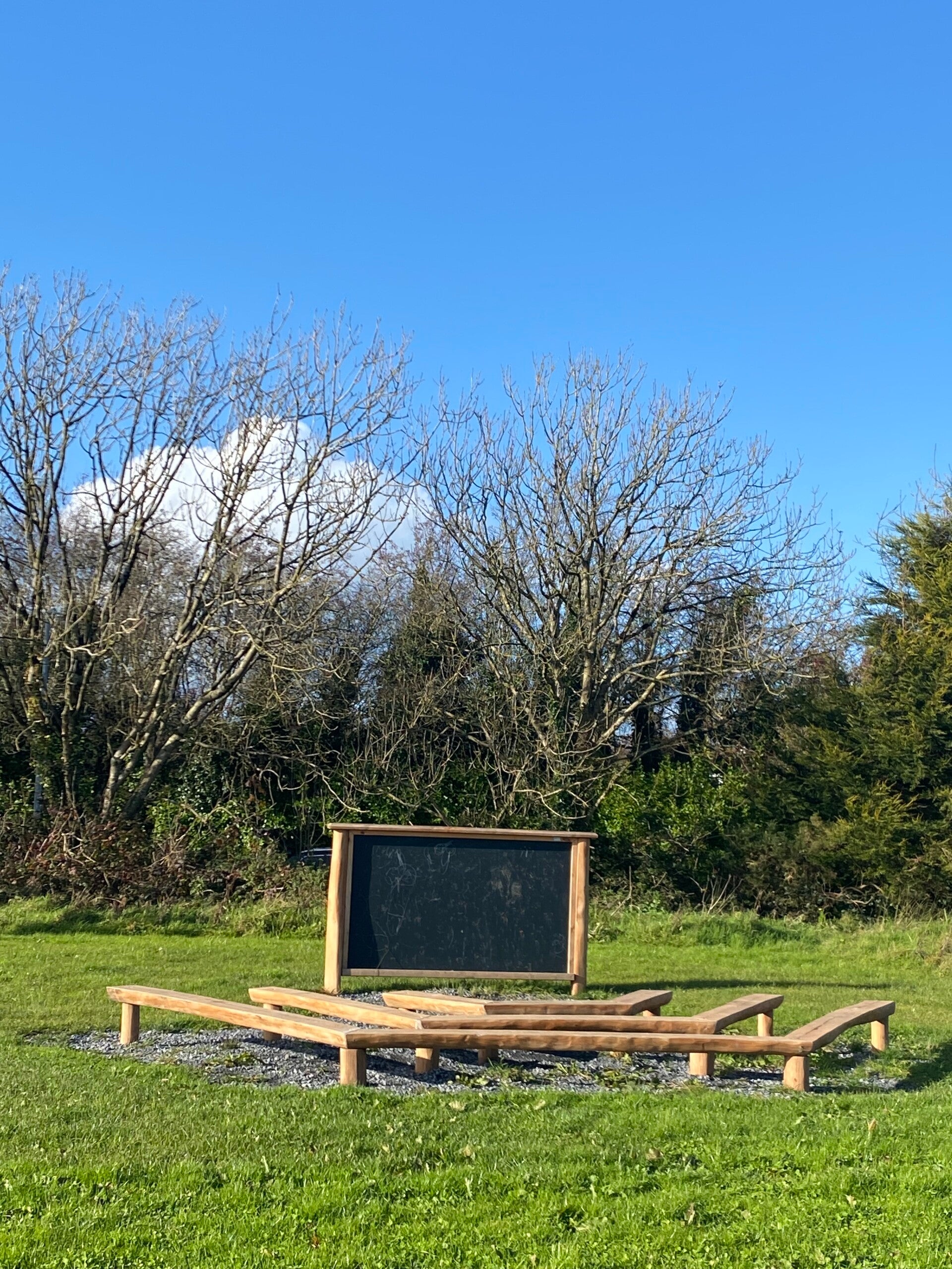 The outdoor classroom pictured here is a recent addition to the parish, located on the linear walk and used regularly by the nearby school.